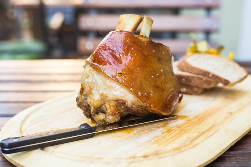 Para este surtido de cervezas se hace necesario poder disfrutar de una gastronomía acorde a su nivel, a base de comida tradicional bávara, como es el codillo de cerdo, el pollo asado con patatas, las salchichas alemanas, gran variedad de ensaladas, brezels, y otros platos típicos.